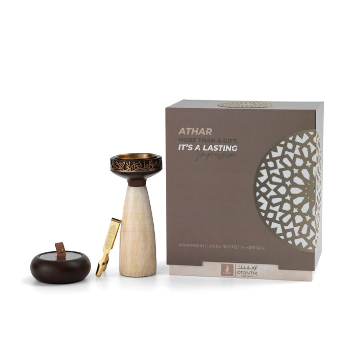 This is the definitive statement piece for your home—the Athar Marble Oud Burner. Crafted from solid, premium marble, its balanced and sleek design highlights the natural beauty of the stone. At a refined size of 20.1 x 8.9 CM, it is the perfect accent to bring timeless elegance and a rich sensory experience to any sophisticated interior.