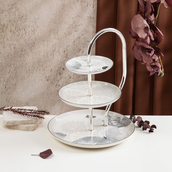 ستاند بورسلان 3 طبقات من فيلورا - رمادي وفضي