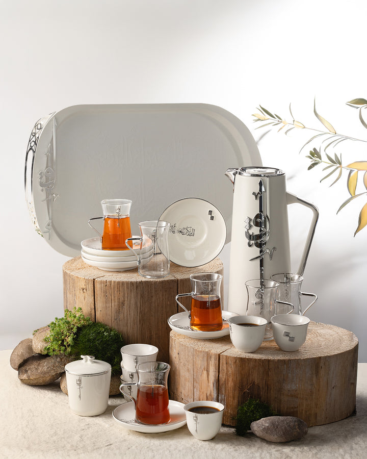طقم للقوة و الشاي مكون من 19 قطعة + دلة واحدة للقهوة أو الشاي + صينية تقديم فاخرة
