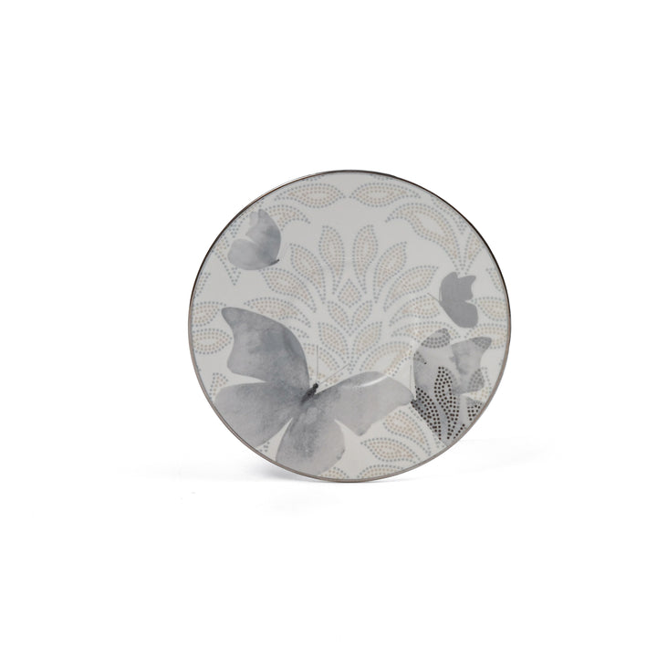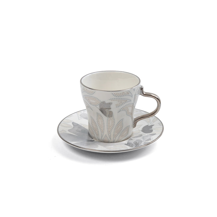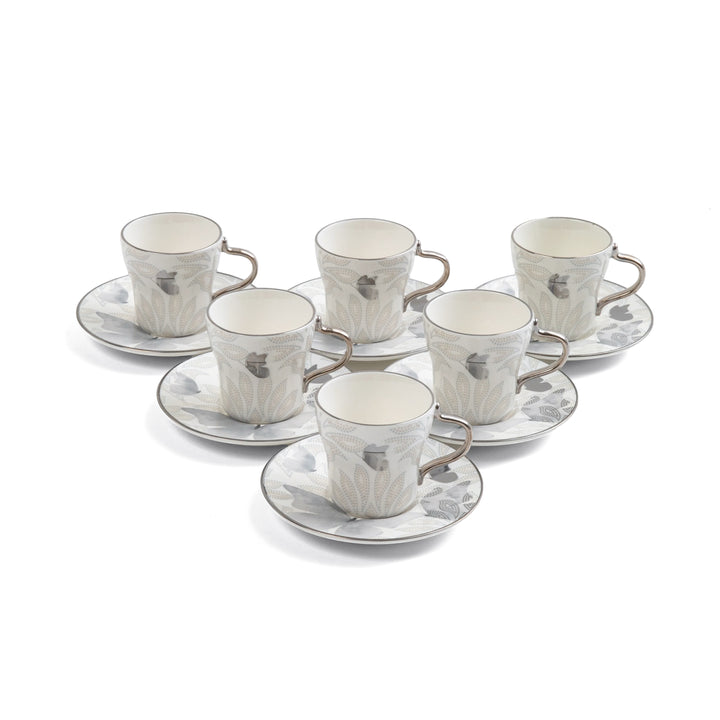 طقم أكواب شاي بورسلان 12 قطعة من فيلورا - رمادي وفضي